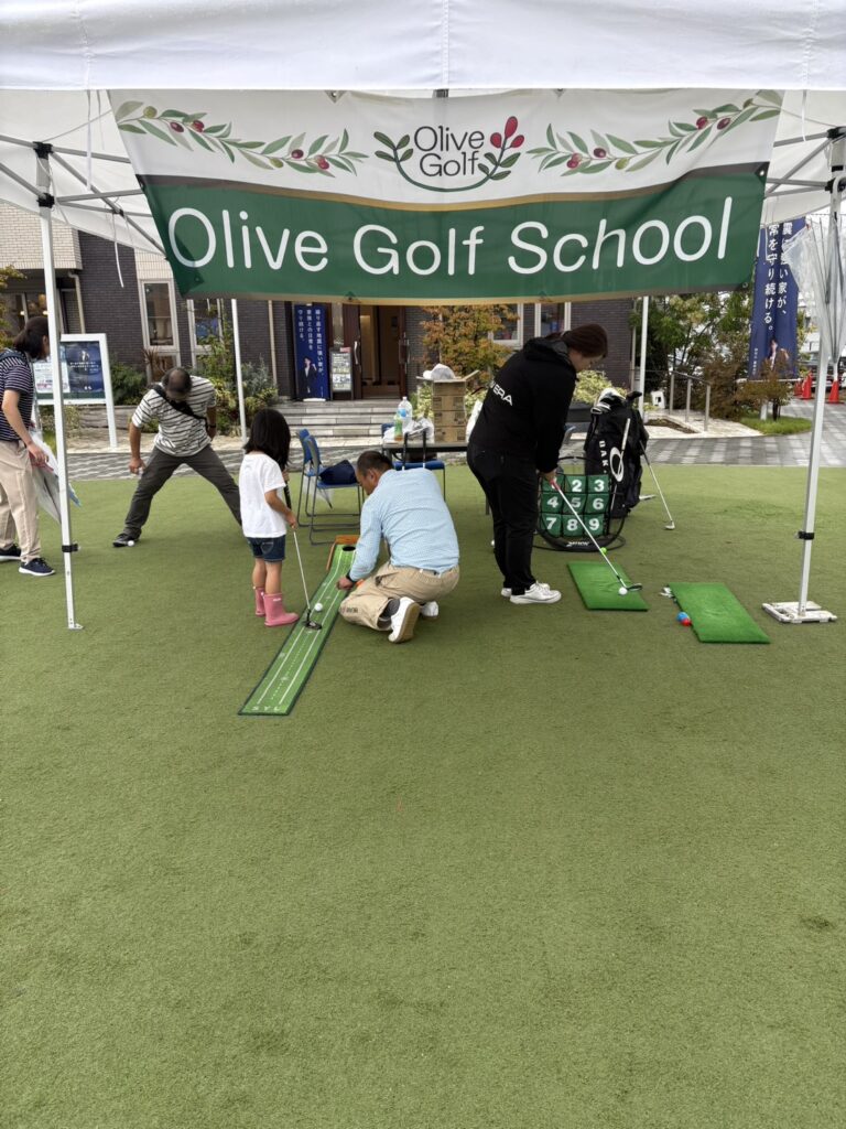 当日はあいにくの雨模様でしたが、OliveGolfSchoolの他にも、キッチンカーやワークショップなどが出店し、訪れた方が参加できるイベントに家族連れでお越しくださりありがとうございました。OliveGolfは、子供さんにも参加いただけるように、キッズ用のクラブも準備し、初めてのパター体験に『入るかな?』と大いに盛り上がり✨笑いが絶えませんでした☺
